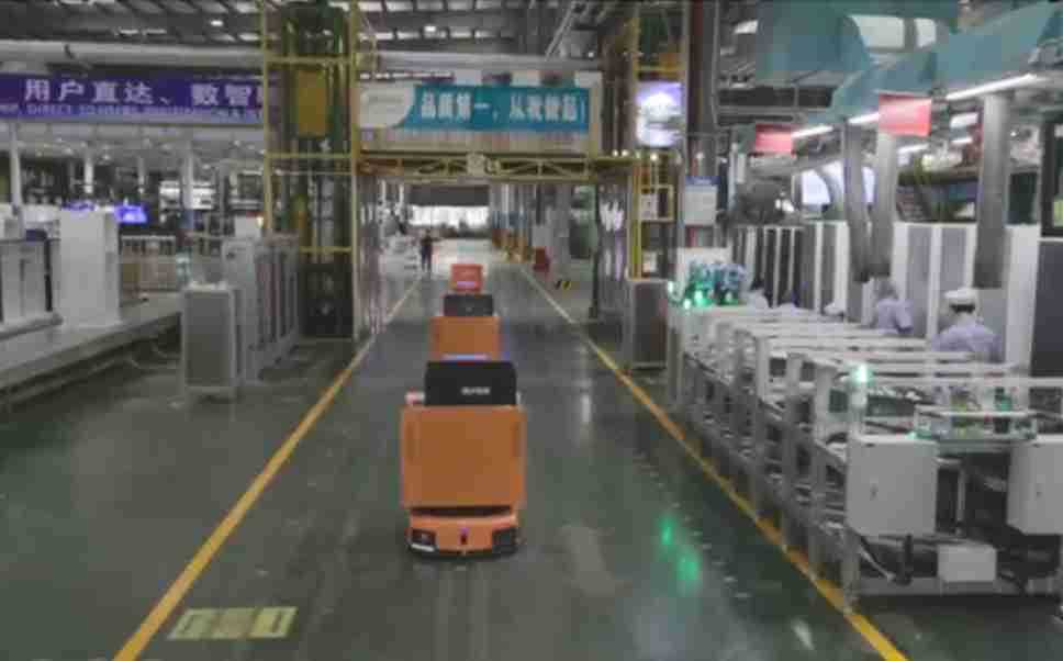 为车载冰箱物流配送打造的智能解决方案,,,包含产中物流通过潜伏举升AMR搬运至线边,,,,产后成品物流智能仓储,,,,流程包含产中物流智能齐套入库,,,,线边安灯叫料AMR智能配送至线边,,,成品入库、、出库,,通过无人堆高车机器人,,,智能仓储管理替代人工作业管理,,,实现更高存储、、更高效率、、、、更具柔性化的解决方案。。。